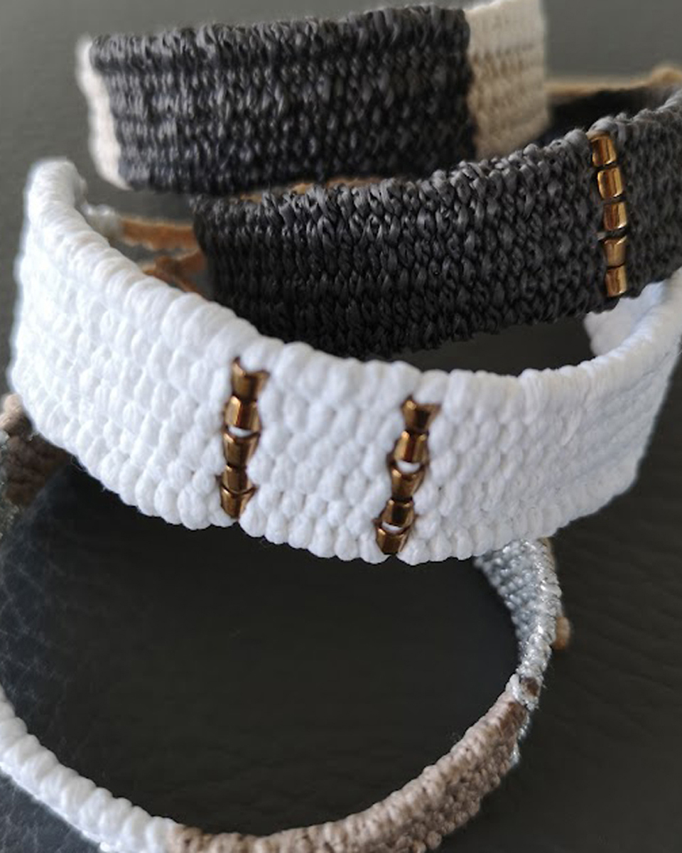 Mes créations de confection artisanale sont travaillées avec des matières premières de la plus haute qualité, des cordes Bobbiny pour la plupart, en coton recyclé fabriqués en Pologne dans une petite entreprise familiale et pour le fil polyester ciré - Slam Cord, il est aussi originaire d’Europe et certifié Oeko-Tex Standard 100, ce qui garantit que ce fil et ses colorants sont non toxiques et conçus sans substances nocives.